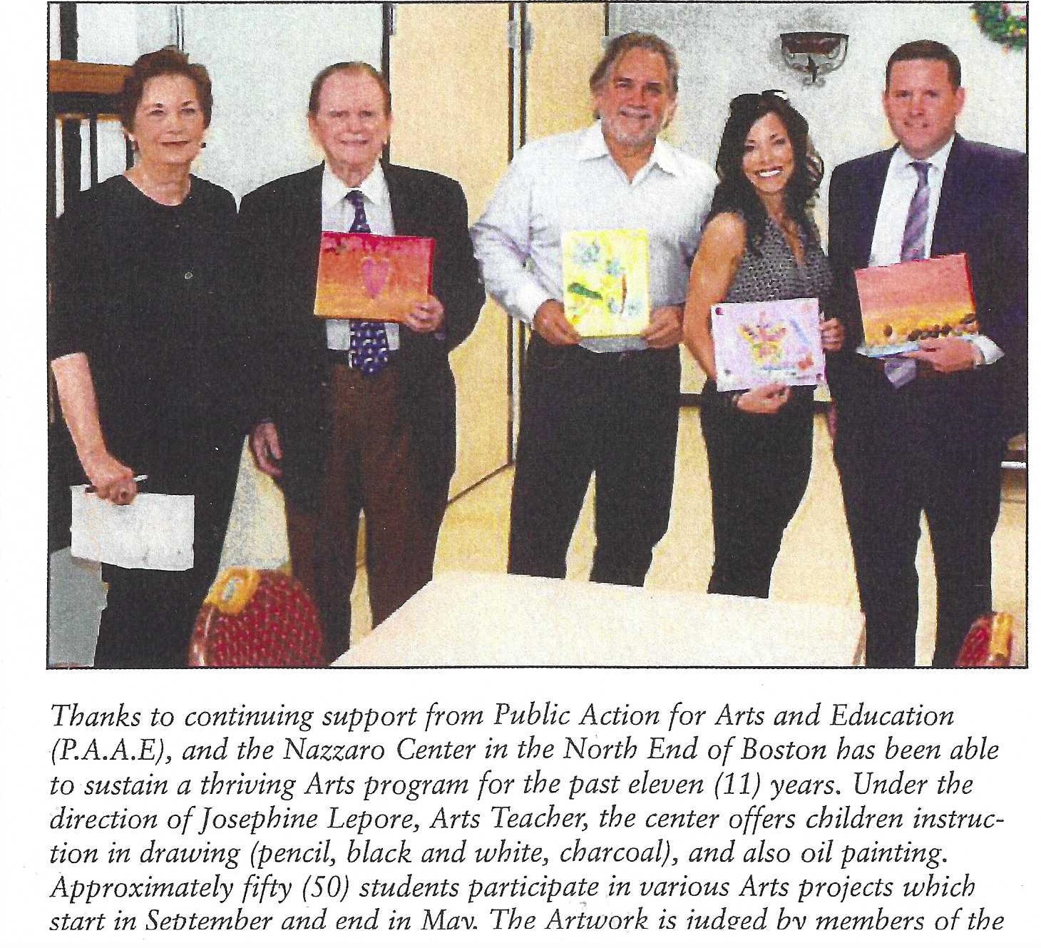 PAAE in partnership with Nazzaro Center judges Children’s Arts Paintings LtoR: Joseph Hill, President; Josephine LePore, Arts Teacher; Advisory Board Members John Peckham III, John Salesses and Amy Patt.