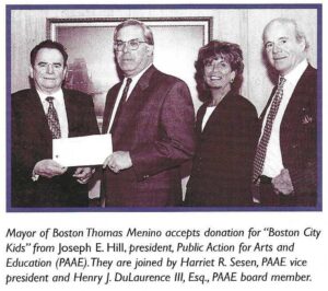 From L to R: Josephine Lepore, Art Teacher; Jeanne Baretta, Board Member; Bob Nolan,Board Member and Joseph Hill, President PAAE.